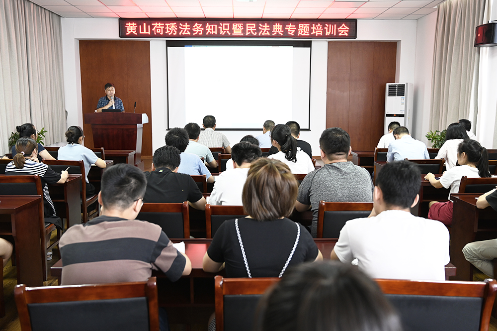 為促進(jìn)廣大職工學(xué)習(xí)、遵守、維護(hù)《中華人民共和國(guó)民法典》,提高運(yùn)用法務(wù)知識(shí)解決實(shí)際問題的能力,8月7日下午,黃山荷琇公司組織了法務(wù)知識(shí)暨民法典專題培訓(xùn)。張昌宏總經(jīng)理主持培訓(xùn)會(huì),相關(guān)科室60余人參加學(xué)習(xí)。